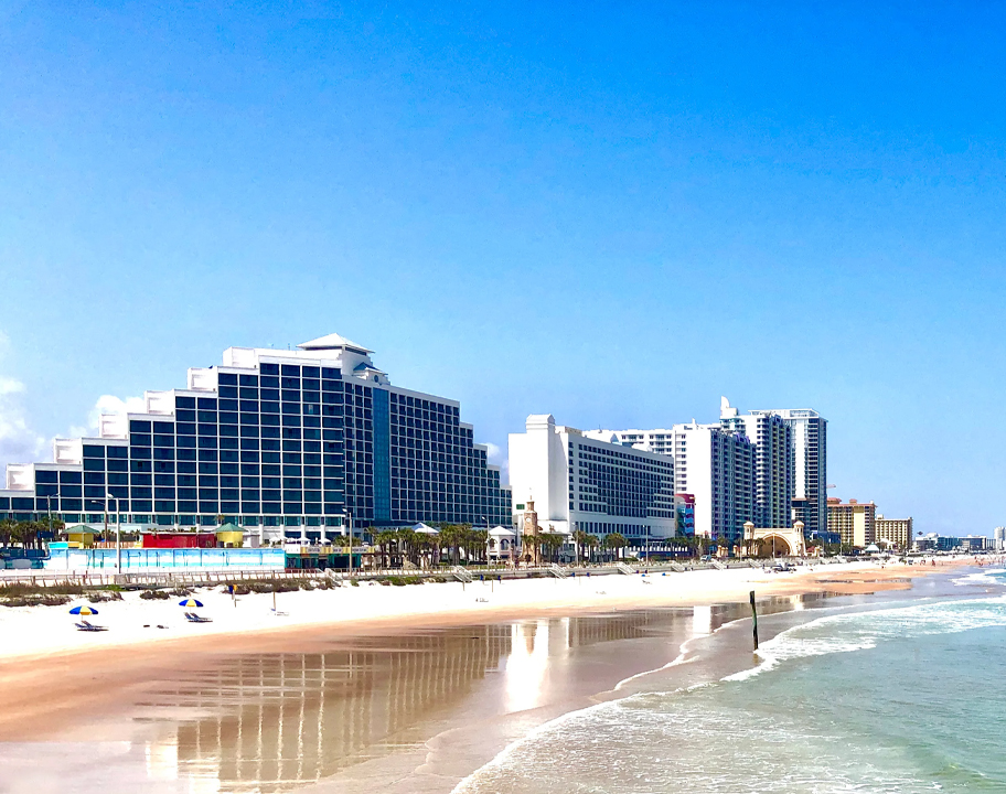 At the center of Daytona Beach, steps from the Boardwalk, Pier, and Ocean Walk Village, Hilton Daytona Beach Oceanfront Resort is the closest oceanfront hotel to the Daytona International Speedway. Our beachfront resort features modern rooms, spacious suites with private balconies, and pet-friendly cabanas, all with direct access to the World’s Most Famous Beach. Families choose us for multiple pools, kid-friendly amenities, and proximity to Daytona Lagoon Waterpark, while couples and groups enjoy ocean-view dining, vibrant bars, and entertainment just outside the door. Guests attending events at the Ocean Center or Peabody Auditorium find our location unmatched. Whether you’re here for a beach getaway, a family vacation, or a trip to the Speedway, Hilton Daytona Beach Oceanfront Resort combines relaxation and adventure at the heart of Daytona Beach.